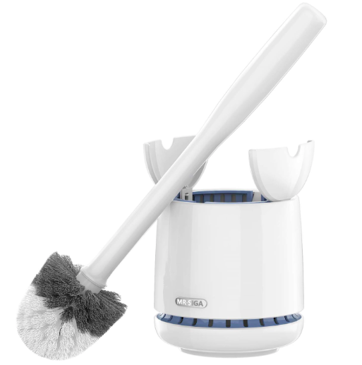 MR.SIGA トイレブラシ 収納ケース付き 丈夫なハンドルと耐久性のある剛毛付きバスルーム掃除、ホワイト、1セット