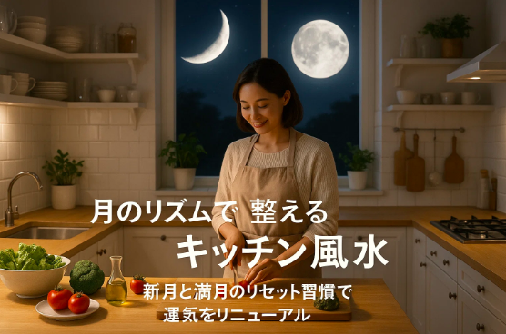 キッチンは「水」と「火」の気が交わる場で、月のエネルギーの影響を受けやすい場所。だからこそ、月のサイクルに合わせた“リセット習慣”を取り入れることで、金運・健康運・家庭運がより安定していきます。