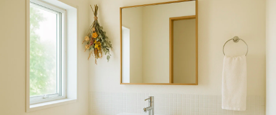 洗面台のすぐそばや鏡の前にドライフラワーを置くのは避けましょう。