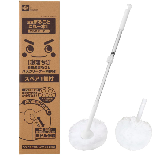 【ネット限定スペア付きセット】 レック 激落ち お風呂 まるごと バスクリーナー ミドル伸縮 + スペアブラシ アミメ状の特殊繊維 バスブラシ お風呂掃除 ブラシ【Amazon】